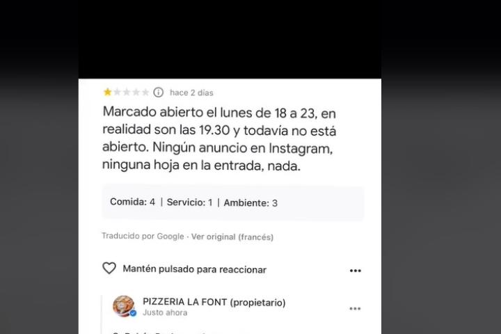 Se queja de que una pizzería está cerrada y la réplica del dueño es un 'tierra, trágame' de manual