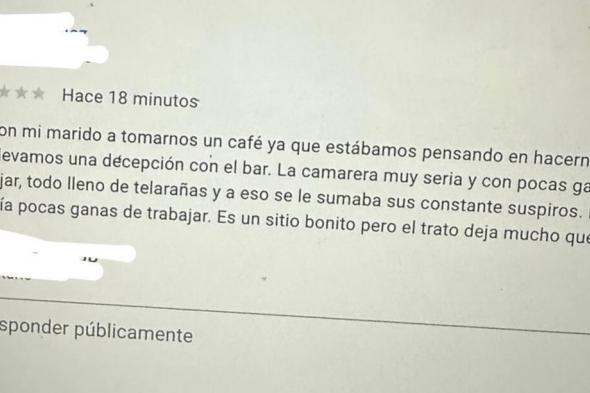 "Todo lleno de telarañas y a eso se le sumaban sus constantes suspiros. Imagino que tendría pocas ganas de trabajar", añadían los clientes antes de rematar: "Es un sitio bonito, pero el trato deja mucho que desear".