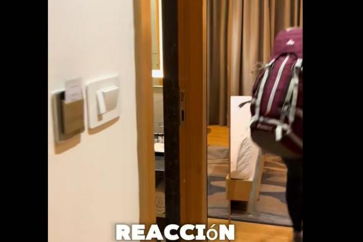 Según ha revelado, ha buscado el hotel y pasar una noche en esa habitación le hubiera costado alrededor de los 70 euros. "Y solo puedo disfrutar de esto cuatro horas", expresó su acompañante, que disfrutaba de la habitación lanzándose a la cama.