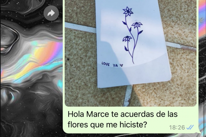 "Hola Marce, te acuerdas de las flores que me hiciste", le pone por WhatsApp junto a una imagen de las flores en cuestión. "Sí, me acuerdo", le dice ella. "Pues me lo he tatuado y con tu número fav", le responde.