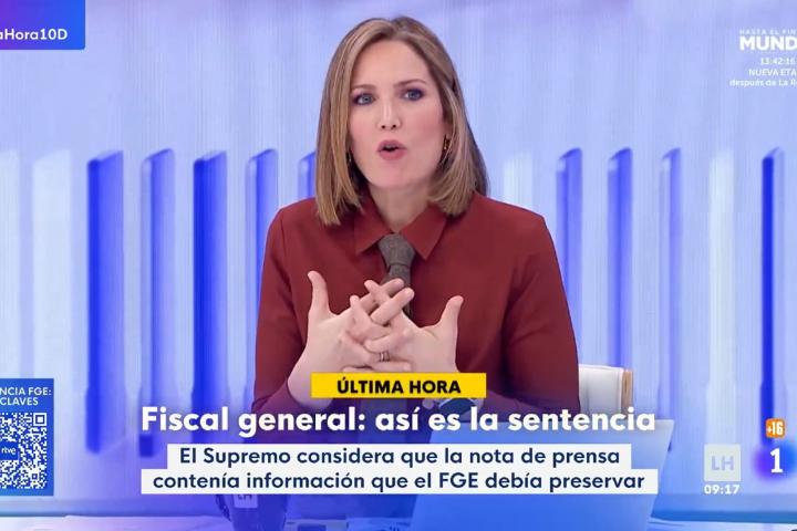 Silvia Intxaurrondo, presentadora de La Hora de La 1, ha dado su opinión sobre la sentencia que condena al Fiscal General del Estado, Álvaro García Ortiz. Y lo ha hecho con una palabra tan clara como rotunda. La periodista de TVE ha publicado una imagen en X acompañada de un mensaje muy descriptivo.