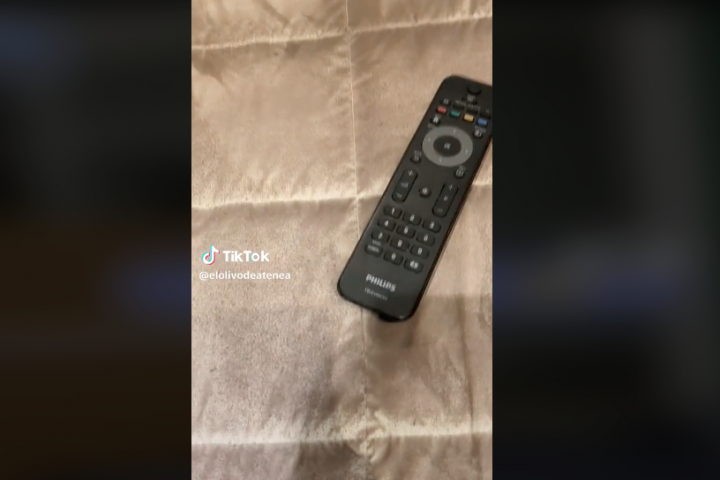 En las imágenes explica que está en un hotel de cuatro estrellas en Italia y "el mando tiene un tornillo detrás para que no se lleven la pila".