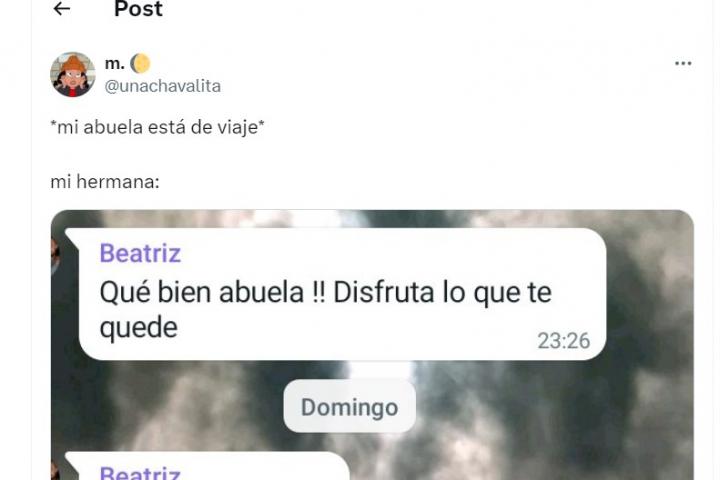 Un ejemplo de lo primero está arrasando en las últimas horas en la red social X. Lo ha subido la usuaria @unachavalita y en el pantallazo se ve el mensaje que su hermana envió a su abuela, que está de viaje.