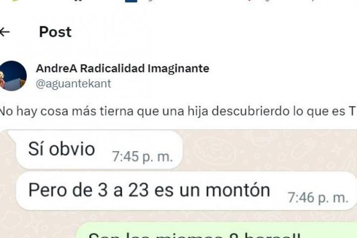La usuaria @aguantekant ha provocado un enorme debate sobre cómo los padres tienen que gestionar ese desengaño de los jóvenes: ha compartido una captura de pantalla de la conversación que ha tenido con su hija, cuando ésta se quejaba de todas las horas que debe trabajar, y ha dejado indiferentes a muy pocos.
