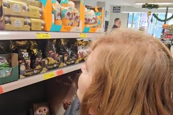 Se queda prendada con la gran cantidad de tipos de bombones. "Yo sabía que en este pasillo ibas a estar horas", apostilla ella mientras su madre va recogiendo y analizando paquetes de bombones.