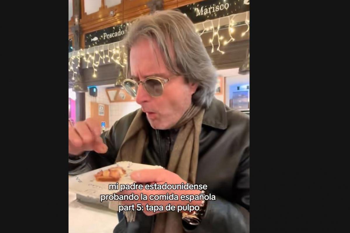 Su padre estadounidense prueba una tapa de pulpo en Madrid por primera vez: por su reacción piden su nacionalidad española