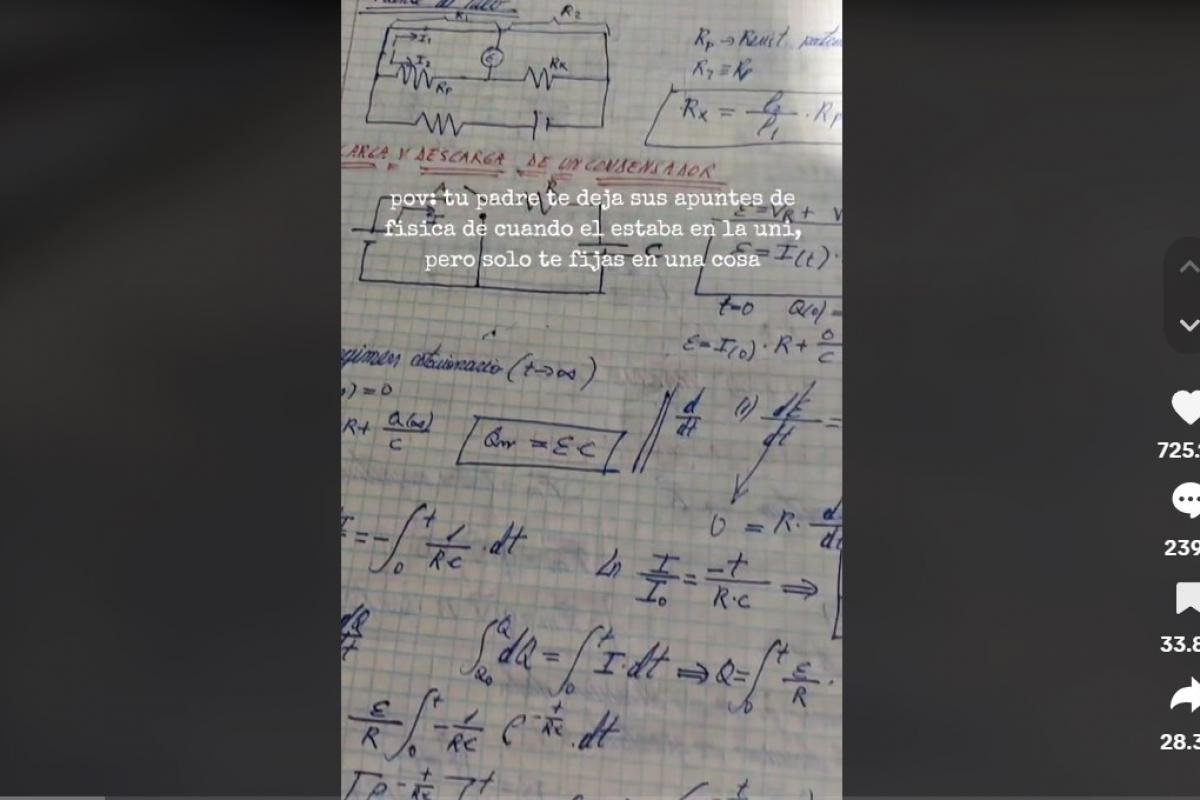 Y, si no, que se lo digan al usuario de TikTok @ivann196, que ha compartido en esa red social lo que ha encontrado en unos apuntes de Física de cuando su padre estaba en la Universidad.