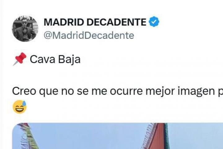 "Cava Baja. Creo que no se me ocurre mejor imagen para definir Madrid en agosto…", ha comentado el usuario de la red social entre risas, justo antes de adjuntar la imagen.