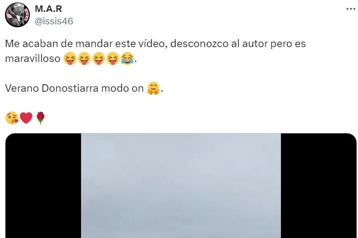 "Me acaban de mandar este vídeo, desconozco al autor pero es maravilloso. Verano Donostiarra modo on", ha publicado la tuitera entre risas justo antes de adjuntar la divertida grabación.