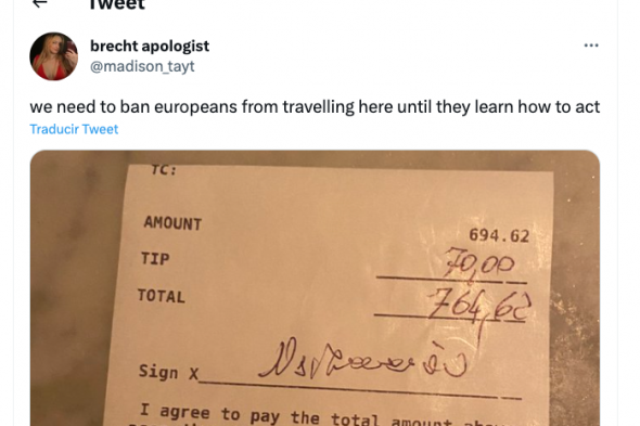 El tuit ha provocado también miles de reacciones de españoles enfurecidos que aseguran que la propina es o debería ser algo totalmente opcional y que no hay lugar para tanta protesta.