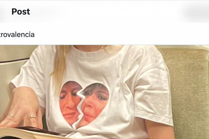 La usuaria de X ha compartido una imagen de una persona sentada en uno de los asientos del Metro de Valencia con una camiseta de lo más comentada: la imagen de un corazón roto con las caras de Bárbara Rey y de Chelo García Cortés.
