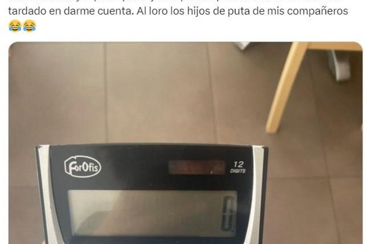 La tuitera María (@menchubasquero) ha publicado un tuit en la red social X, anteriormente conocida como Twitter, en el que ha contado una broma que le han gastado sus compañeros de trabajo en su calculadora.