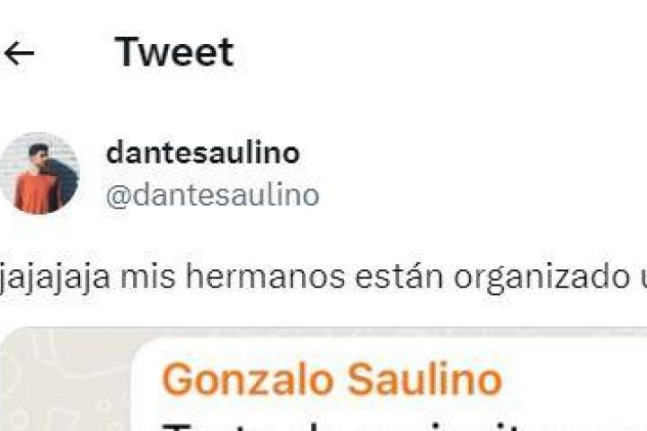 El usuario de Twitter @dantesaulino ha publicado una fotografía de la conversación de WhatsApp que ha tenido con sus hermanos por la fiesta que están organización.