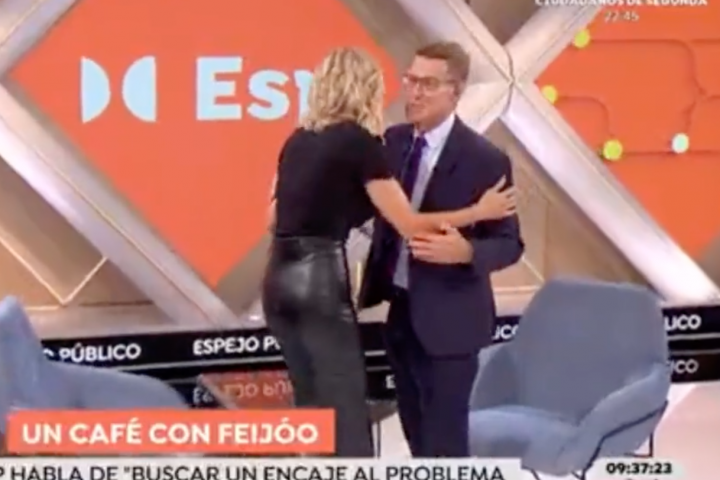Griso recibió al político con dos besos e inmediatamente después soltó una frase que no tardó en hacerse viral: "Le he dado dos besos y... no sé. Ahora si....". Feijóo zanjó rápidamente el asunto con un escueto "ha sido usted", que obtuvo la respuesta de la presentadora: "Eso es cierto".