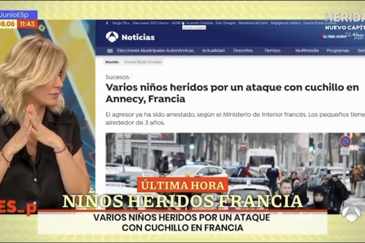 Todo por una frase que ha dicho al dar una de las noticias del día. Un hombre armado con un cuchillo ha apuñalado a seis niños y un adulto en un parque de la localidad francesa de Annecy, en el este del país. Según medios locales, habría entre 6 y 8 heridos, seis de ellos niños menores de 3 años.