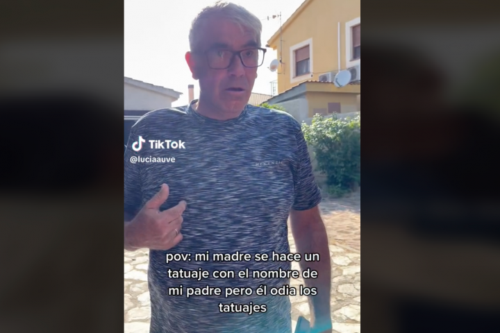 "Mi madre se hace un tatuaje con el nombre de mi padre, pero él odia los tatuajes", escribe la usuaria junto al vídeo, en el que se ve cómo la mujer, con el tatuaje recién hecho, llega a su casa, donde la recibe su marido.
