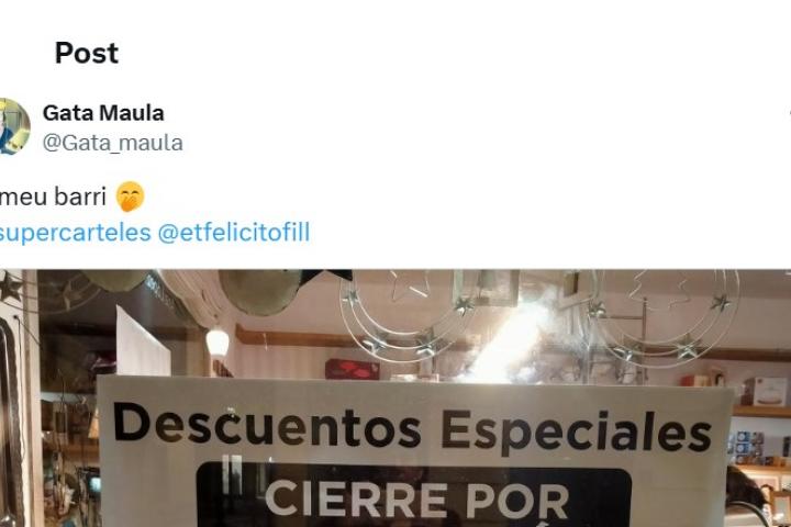 La imagen la ha subido a la red social X la usuaria @Gata_maula y en el letrero se puede leer: "Descuentos especiales. Cierre por jubilación".