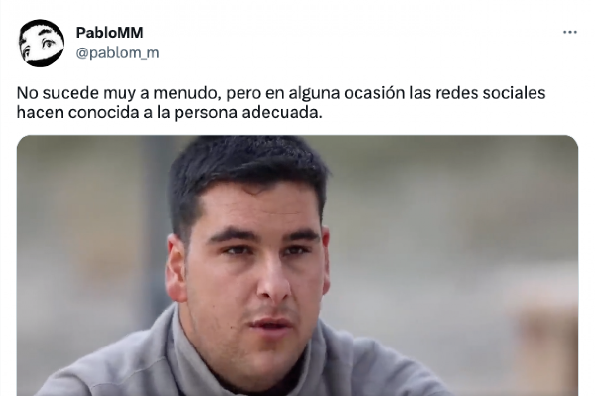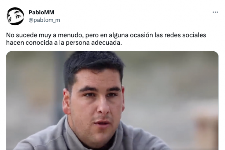 El vídeo lo ha subido a Twitter @pablom_m junto al mensaje: "No sucede muy a menudo, pero en alguna ocasión las redes sociales hacen conocida a la persona adecuada". Y el mensaje acumula en menos de un día más de 11.300 'me gusta'.