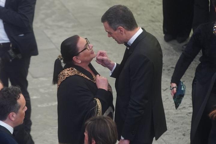 Sin embargo, una de las imágenes que más han llamado la atención en las últimas horas es una en la que se ve al presidente del Gobierno, Pedro Sánchez, hablando con la cantante María del Monte en los pasillos del Palacio de Exposiciones y Congresos FIBES de Sevilla.