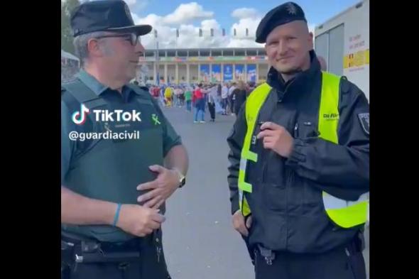 "Hemos llegado hoy a Berlín y actuamos como apoyo a la Policía alemana en este evento masivo deportivo, junto con nuestros compañeros de la Policía Nacional y estamos esperando a que nuestros compatriotas vengan a disfrutar del evento", ha respondido él. Lo que ha llamado la atención es que lo ha dicho en un perfecto idioma alemán, a la par que el acento, "clavado".