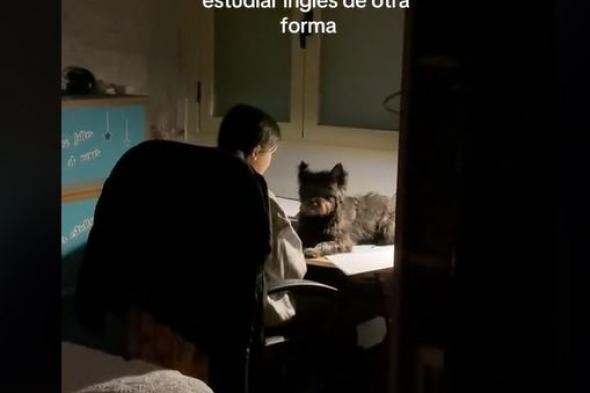 La imagen muestra a la joven hablando en el mencionado idioma mientras mira a su perra Nala que se encuentra encima del escritorio. Aunque en un momento dado el animal intenta jugar, no consigue 'distraer' a su dueña.