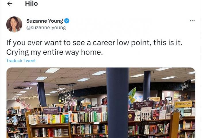 La escritora Suzanne Young, colaboradora del periódico estadounidense The New York Times, ha publicado en su cuenta de Twitter (@suzanne_young) una fotografía de lo que le ha ocurrido tras la firma de su último libro en una librería de ciudad.