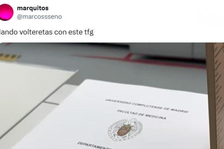 "Dando volteretas con este TFG", ha escrito el usuario junto a la imagen de la portada de este trabajo. El tuit se ha hecho viral con más de 380.000 reproducciones, 11.000 me gusta y más de 700 compartidos.