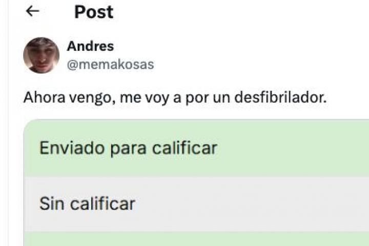 "Ahora vengo, me voy a por un desfibrilador", escribió en su último tuit, que lleva más de 1,3 millones de reproducciones, 32.000 me gusta y casi un millar de compartidos.