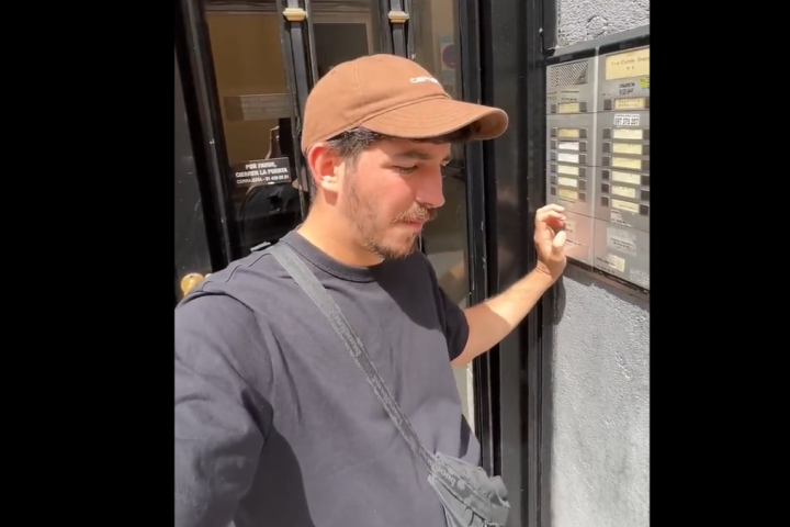"Tocas el timbre el cualquier edificio, en cualquier portal, y te abren la puerta", dice antes de mostrar la puerta de un portal directamente abierta y otro vecino que le abre sin responder: "Este no tuve que hacer directamente nada, no tuve ni que mentir".