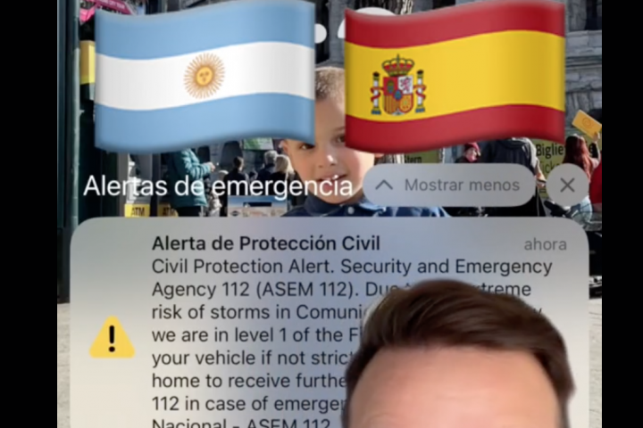 El usuario de TikTok @merakioteama, argentino y residente en Madrid, ha contado cómo ha vivido el momento en el que los organismos de Protección Civil de la capital española han decidido enviar una alerta telefónica a la ciudadanía para avisar de la situación provocada por las abundantes lluvias.