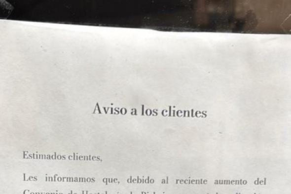 En esa hoja de puede leer: "Estimados clientes, les informamos de que, debido al reciente aumento del Convenio de Hostelería de Bizkaia, que será de aplicación retroactiva a partir del 1 de marzo de 2025, estaremos obligados a reajustar nuestros precios".