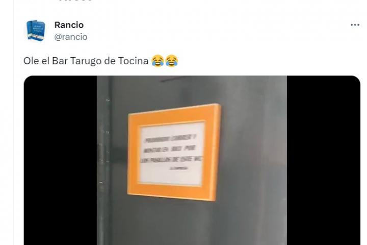 El usuario de Twitter @rancio ha subido un vídeo a Twitter en el que muestra el genial cartel que ha puesto en la puerta de sus baños el bar Tarugo, en la localidad sevillana de Tocina.
