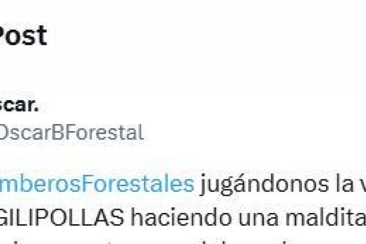 Con un total de 21 grandes incendios todavía activos en España, todavía hay gente que se la juega con el fuego en pleno agosto, algo que ha hecho que el bombero forestal y usuario de X @OscarBForestal no pueda aguantar su enfado.