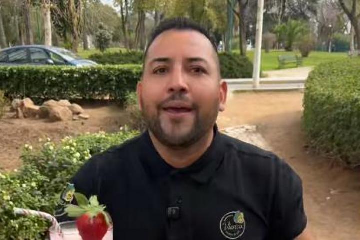 En su misión para captar la atención con innovadores platitos en el Bar Vianco, de Córdoba, lo primero que ha enseñado es un batido de fresa natural. Hasta aquí todo normal, pero la verdadera novedad llega con la tapa que tiene en su mano izquierda.