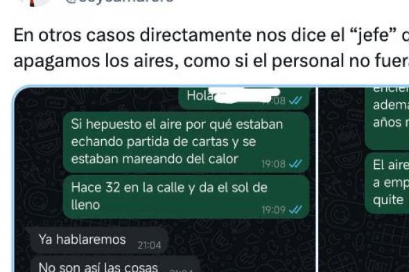 La cuenta Soy Camarero ha compartido la conversación de WhatsApp entre un camarero y el dueño de un bar porque al trabajador había tenido la idea de poner el aire sin preguntarle.