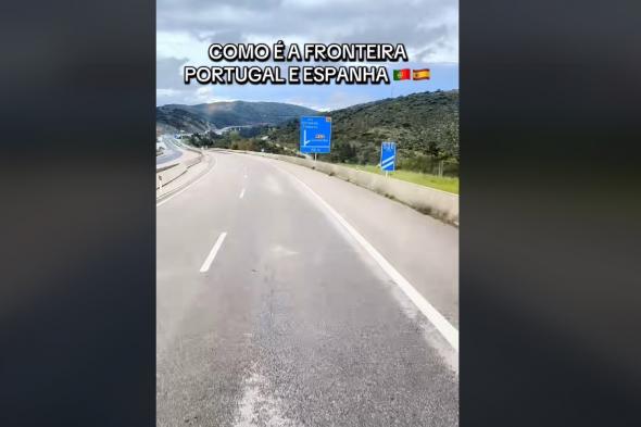 El conductor explica que la frontera es simplemente una placa que indica que se está entrando en otro país mientras se va acercando a España. Además, explica que en el cambio de país acaba la A4 portuguesa y comienza la N-122 española.