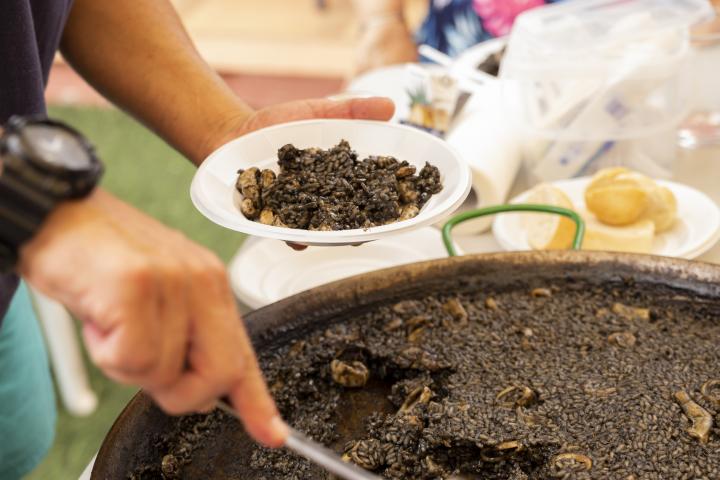 "Parece paella negro, pero la mayoría de comida española está buena. Un poco raro que el arroz sea negro, pero bien", afirma el canadiense, antes de que se pueda ver su reacción en la mesa con el arroz.