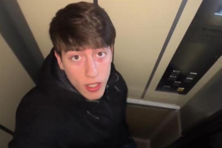 Un chico se queda encerrado en un ascensor a causa del apagón y esta es su reacción
