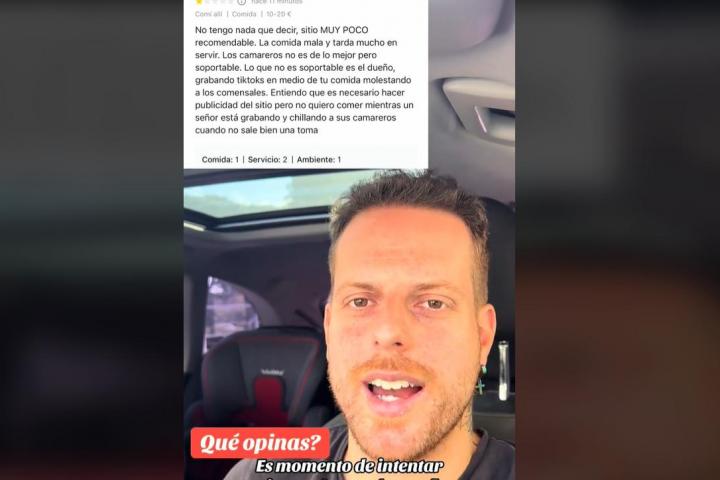 "Pasan, a lo mejor, 1.000 personas diferentes cada día en mi restaurante y que al final del día tú mires y tengas una reseña que encima es de alguien que no ha venido y se dedique a poner estos comentarios solo porque no le gustan tus vídeos, y que no se pueda certificar...", ha deslizado.