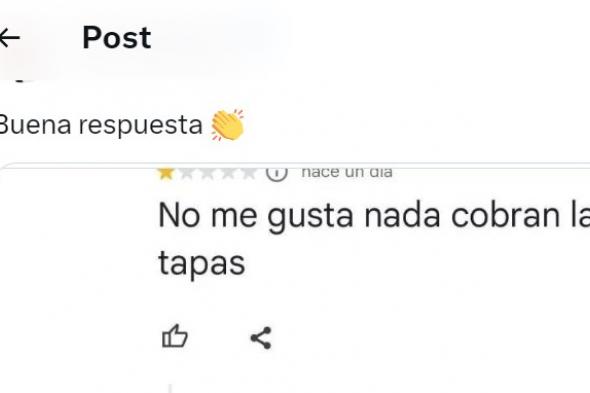 Es el caso de la reseña que un cliente ha dejado en el perfil de un restaurante en el que mostraba su enfado porque las tapas no fueran gratis. "No me gustan nada, cobran las tapas", aseguró, junto a una calificación de una estrella.