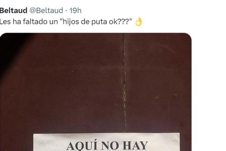 Los carteles informativos colgados en cualquier rincón son siempre sinónimo de éxito en redes sociales como X, anteriormente conocida como Twitter. La usuaria Beltaud ha sido la autora del último ejemplo.