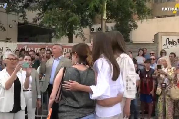En unas imágenes emitidas este miércoles en el programa de laSexta Aruseros se puede ver las hijas de los reyes estuvieron haciéndose fotos con muchas de las personas que se habían dado cita en los exteriores del edificio para verlas.