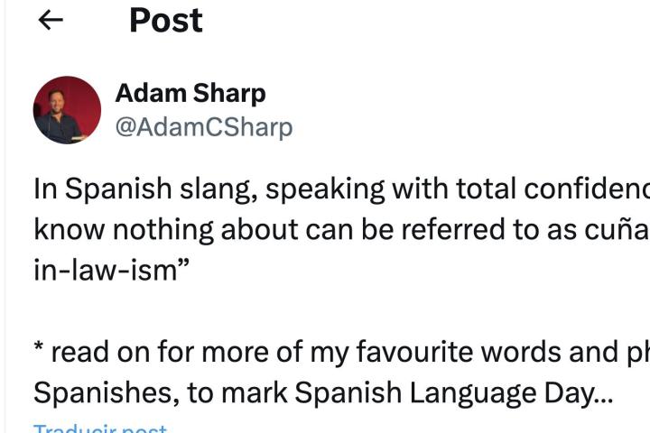 Ha hablado en ese hilo en X (antes Twitter) Sharp de la palabra "cuñadismo", algo que ha definido como: "En el argot español, hablar con total seguridad sobre un tema del que no se sabe nada se puede denominar cuñadismo".