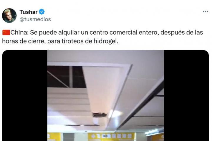 "China: Se puede alquilar un centro comercial entero, después de las horas de cierre, para tiroteos de hidrogel", ha explicado el usuario, justo antes de adjuntar el vídeo en el que se puede ver a la gente en la batalla ficticia.