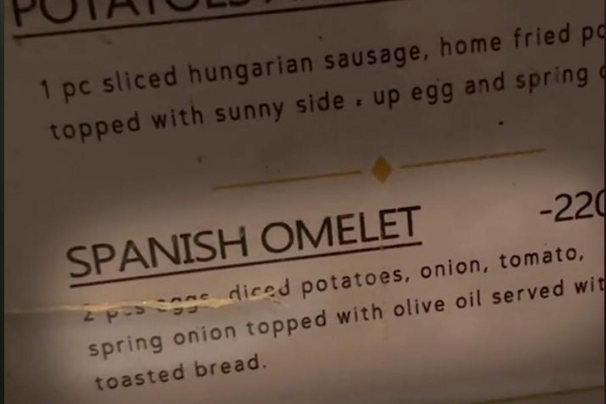 El tiktoker @rubenholg está en Filipinas y por casualidad ha encontrado un restaurante en el que sirven lo que allí llaman "spanish omelet", es decir, tortilla española. Nada más ver los ingredientes ya puede uno darse cuenta de que la cosa no va a salir bien.