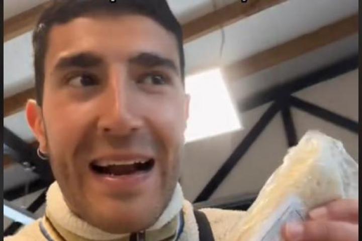 "O mira, este sandwich de mojón normal y corriente, 7,20 euros. Bueno, 7.200, que es como siete euros. Y este batidito de proteína, mira, 1,50 euros", ha señalado el influencer, enseñando el precio de los productos.
