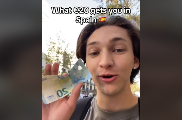 El usuario de TikTok @damedamian, un estadounidense residente en Barcelona, ha querido hacer un juego para sus seguidores en el que muestra todo lo que es capaz de comprar con un billete de 20 euros.