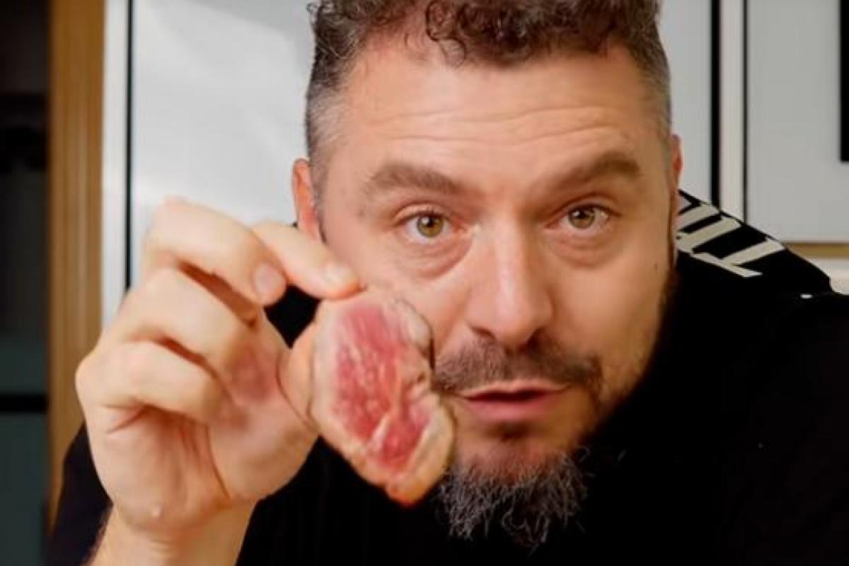 "Imaginaos que esta sal son estos bichitos de los que estamos hablando. Y lo que hago es llegar, tocar aquí con la manaza, ahora coger la carne, manipularla, la restriego por toda esta porquería... Y aquí ahora lo que tenemos es carne contaminada", ha explicado el experto, tirando un poco de sal por encima de una tabla de madera donde está apoyada la carne.