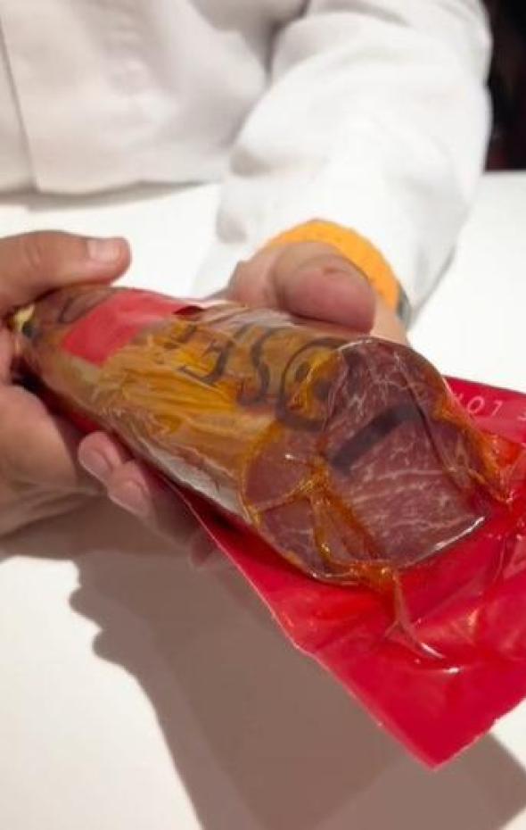 La última recomendación que ha dado el cortador, que también se puede aplicar al jamón, es cortar todos los días un platito, para mantener así siempre el corte "súper fresco".