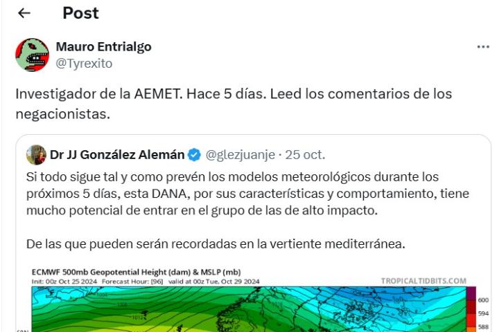 Un experto avisó hace cinco días de lo que podría ocurrir con la DANA y provocó estas reacciones